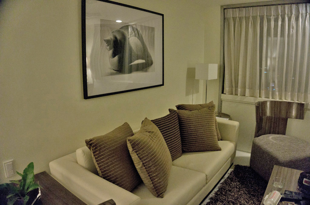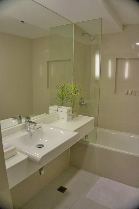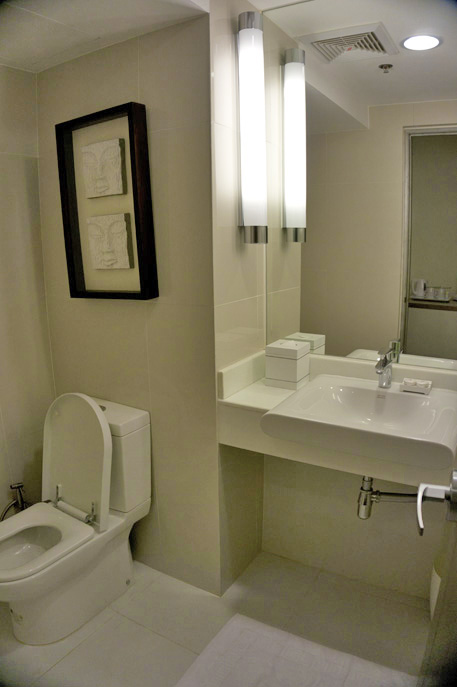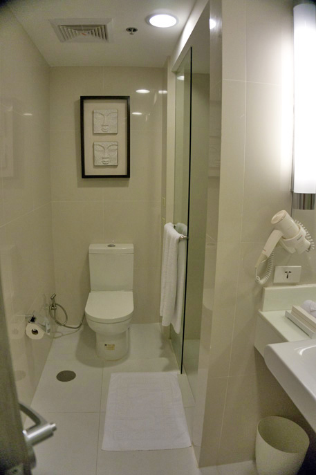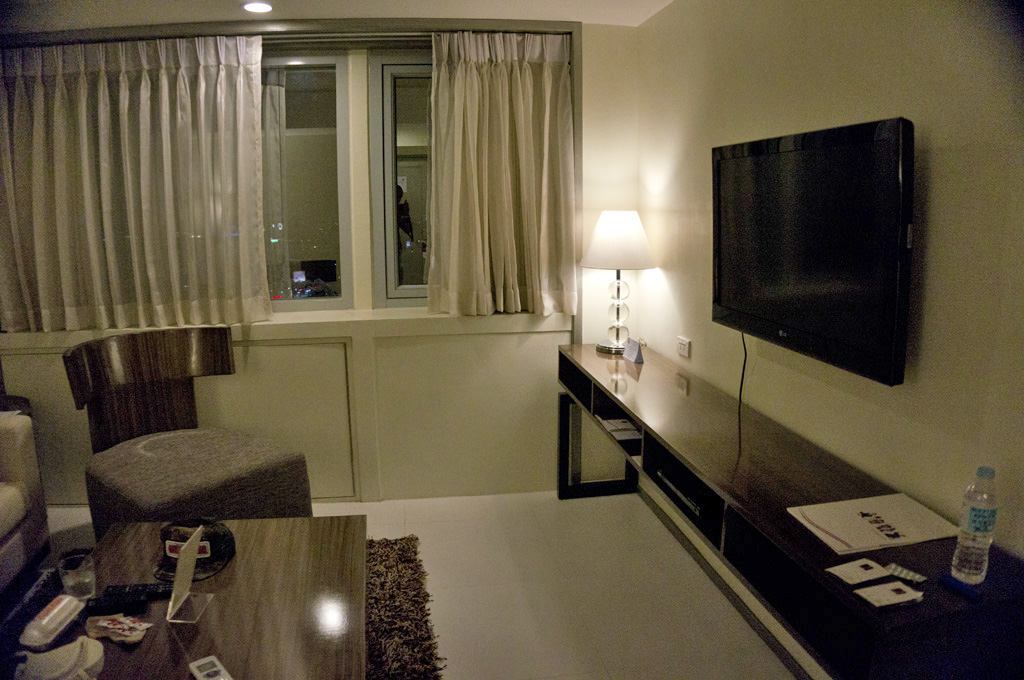 The rooms are affordable at 2000-500 PHP (40-100 Euros) clean-cut and stylish in silvers, whites and purple with a touch of art-deco. For business the suites are great, with a sepate room with its own flat-screen, couch and toilet. All rooms have tubs which is somewhat rare and a blessing after a long day.