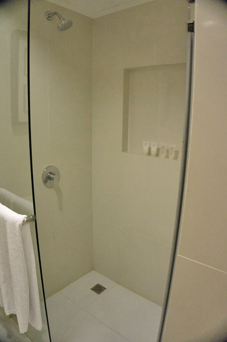 To get into the hotel you have to pass the security guard and the metal detector which feels strange but with a huge Jeepney station and general hubbub nearby it must be necessary. After that struggle the staff is quick and helpful. Check in – Check.