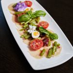 I started out with a lobster soup with truffles well seasoned and in a tiny espresso cup and of course the Flammkuchen with truffles needs to be mentioned that was a cool approach to share your food on the table. Crunchy with the right touch of Umami. As an in-between course I had the tuna steak which was seared with black sesame and left almost raw on the inside…so mouth-watering. The addition of peach and Enoki mushrooms was a brilliant approach to a classic dish. The second in-betweener was a Langoustine on a truffle puree mixed with grilled salsiccia. I am a sucker for this Italian sausage and this was my personal highlight of the evening and that included a to die for Tomahawk steak we destroyed – seared to perfection with so many sides, I couldn’t name them all if my life depended on it. The reason might be that drinking a tasty red wine (my favorite was the – Abadia Retuerta 2013) all night long tends to loosen the tongue and the brain. By the time we reached the dessert variation with everything from brownies to raspberry ice cream I was close to a happy food coma.