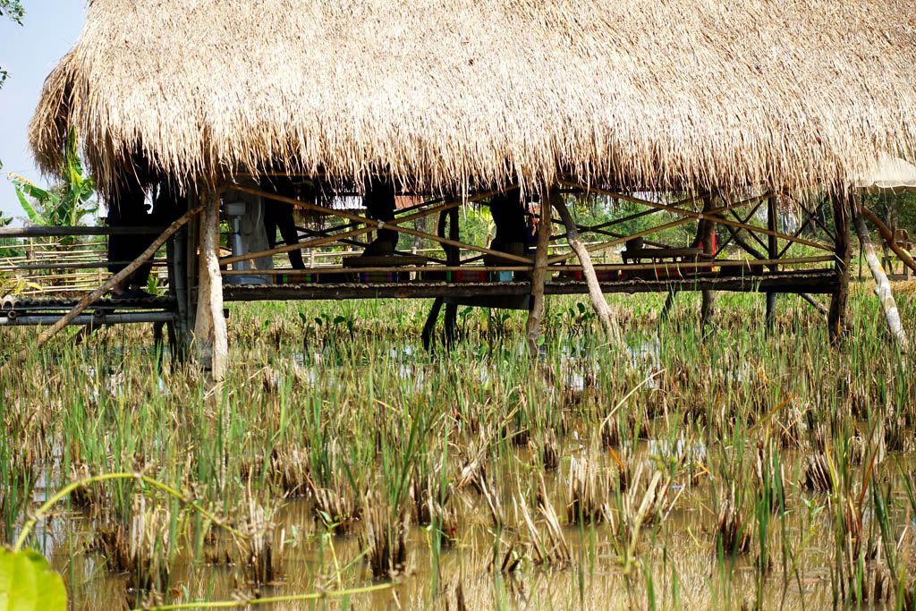 Getting excited for more I start to explore the area with my guide learning about long beans, strawberries, mulberries and of course rice farming. It is around noon and the heat is starting to melt my brain as I am invited to relax in the shade under the palm leaf roofs as the gentle breeze helps me cool down. The hut is in the middle of the rice field standing on stilts and open to all sides as I take in the view I realize it is finally time for lunch!
