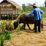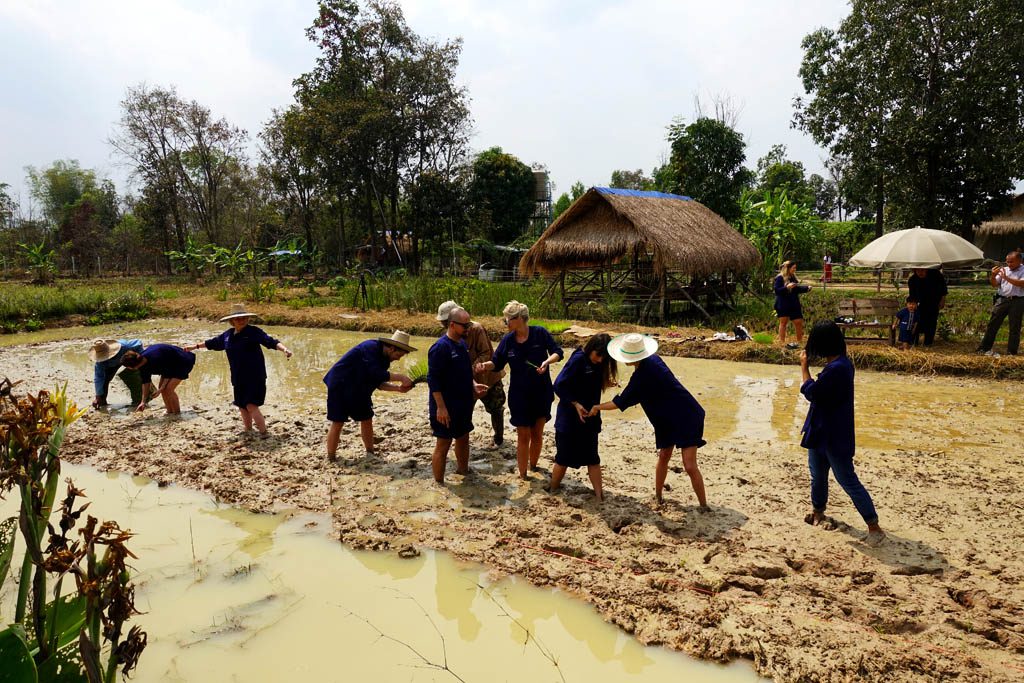 I am served a delectable meal with all ingredients coming from the farm and dishes that include a delicious papaya salad, barbecued chicken, laab kai (minced chicken spicy salad) and red rice. In tradition with Thai culture I share my food with my fellow travelers on a big table, which is called Khantok.