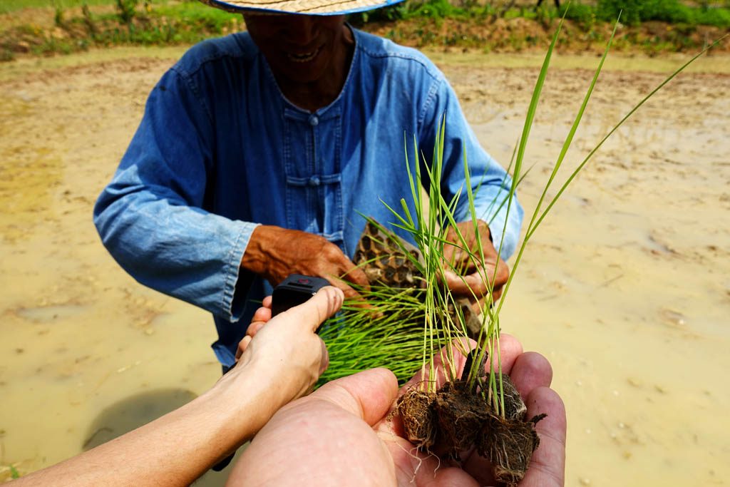 Well fed and relaxed i get down to business and start planting rice seedlings in a bed of water and mud, which i do of course – barefoot. The sensation on my feet would be best described as walking on soft marshmallows. Each rice seedling is placed along a rope which spans across the field (the pros here of course do not need any guidelines). The work is extremely hard but somehow also has an meditative aspect to it as I crouch down to set each seedling by hand carefully. The respect I have for the workers here doing this each day is indescribable. Rice Farming is not for the faint hearted!