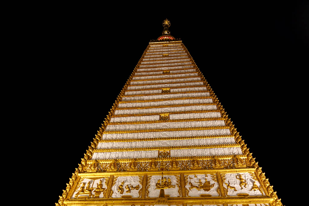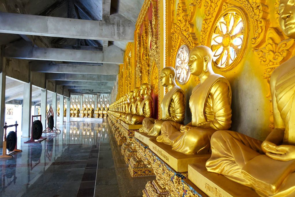 Located in Phu Khao Kiew in the Roi-Et province. This mind-boggling golden monument built to give relics of Buddha a home and offer the people/monks a place for dharma practices & education is one of the largest Pagodas in Thailand. With 101 being the length/width and the height the number is the literal translation of the name Roi-Et (the city nearby). A golden marvel that mesmerizes mind and soul with the top of the main pagoda being made from pure gold. The highlight culturally is the top of the chapel holding Buddha Relics and the highlight visually is the second balcony overlooking the whole are giving view to the world around you.