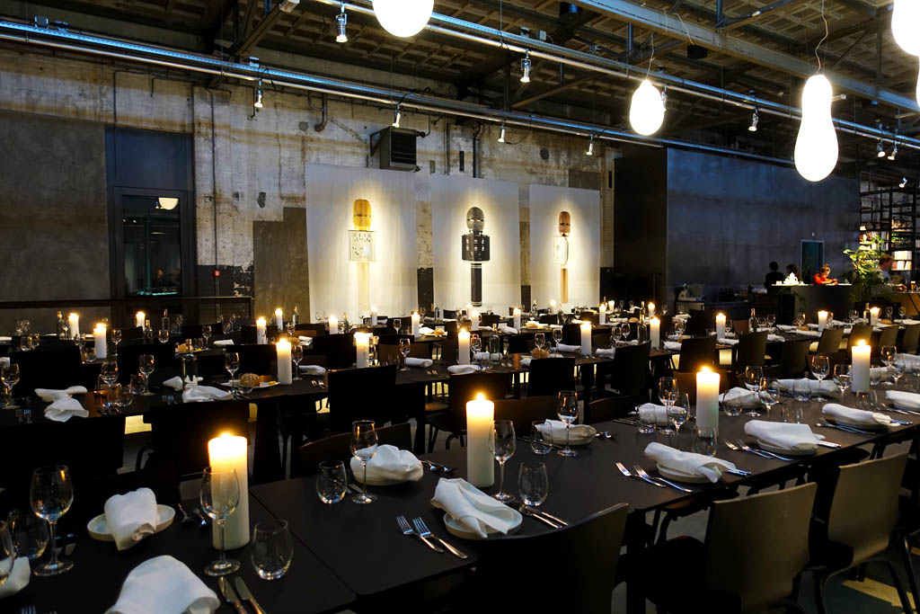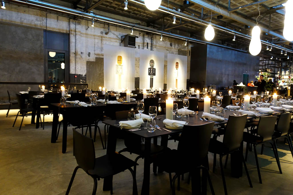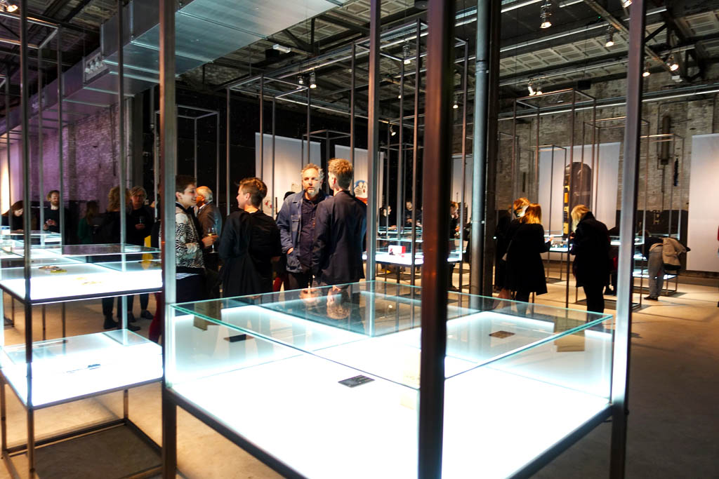 Close to the center of the city this ginormous location the Kazerne – a former military police barracks and the adjoining warehouse was redesigned to give the creative industries a place to showcase art & design in combination with good food and drinks. The very stark design of the interior puts exhibitions in the right light with minimal intrusions into the artwork. White illuminated glasses cubes were placed throughout the whole area and were the podiums for the art pieces.