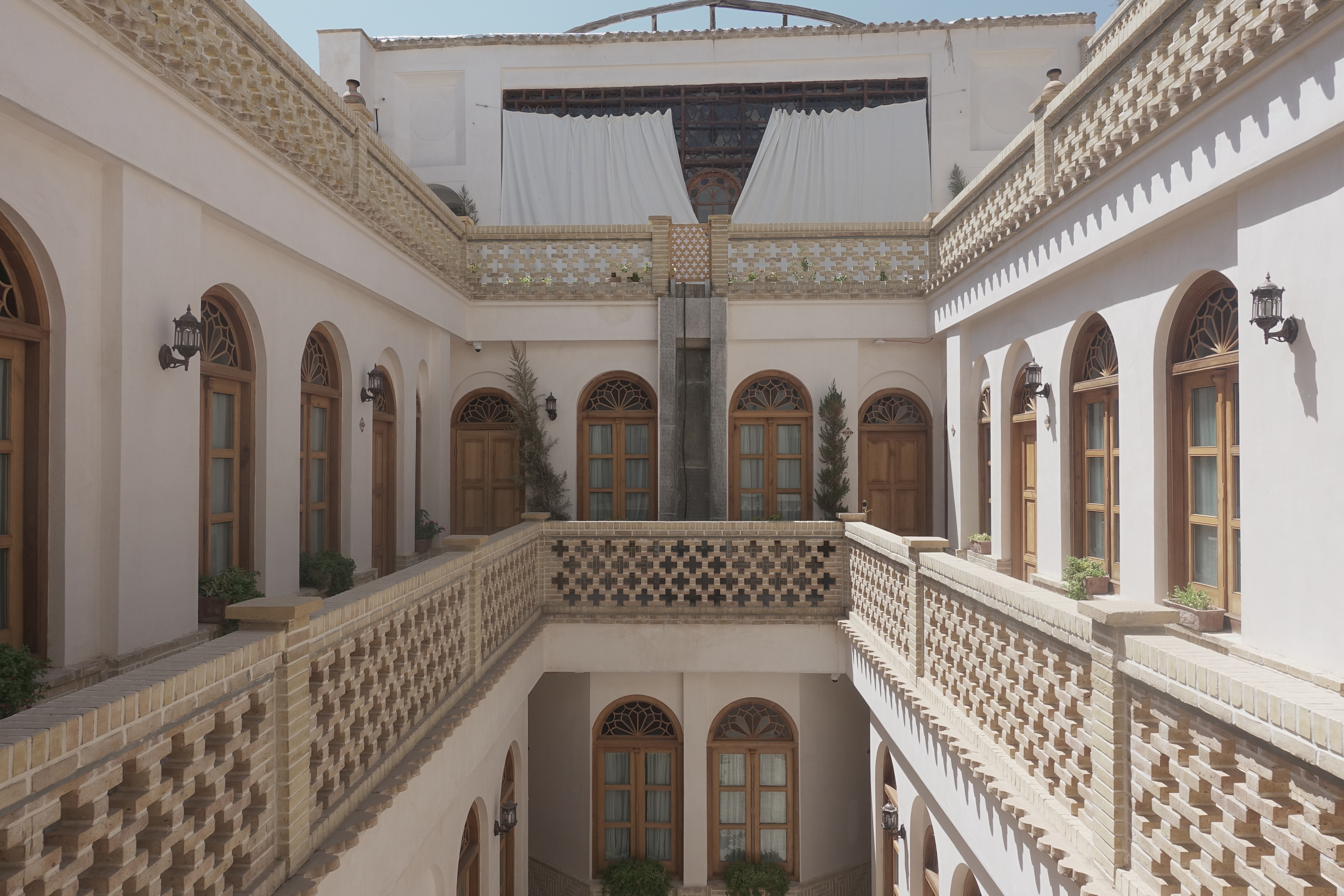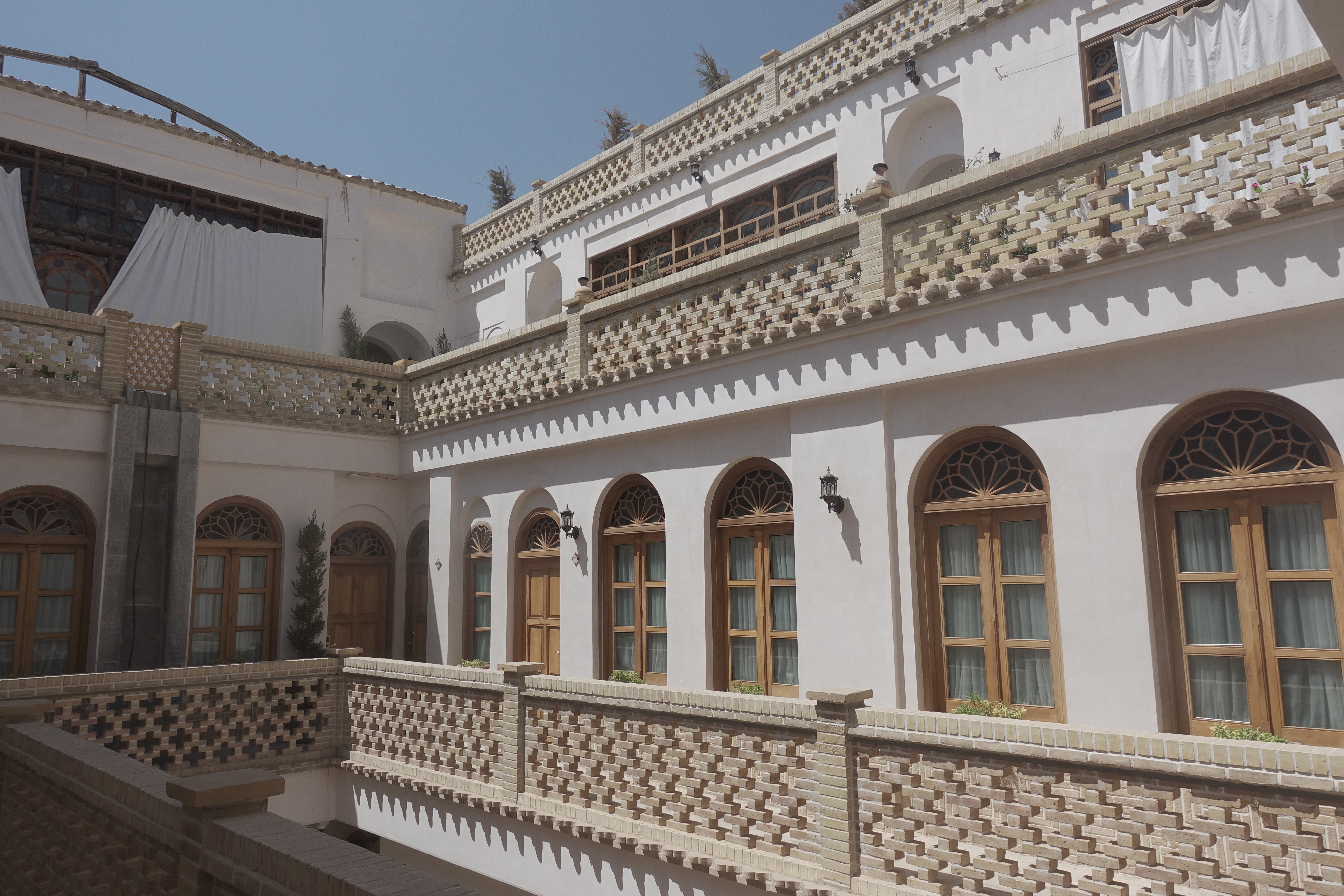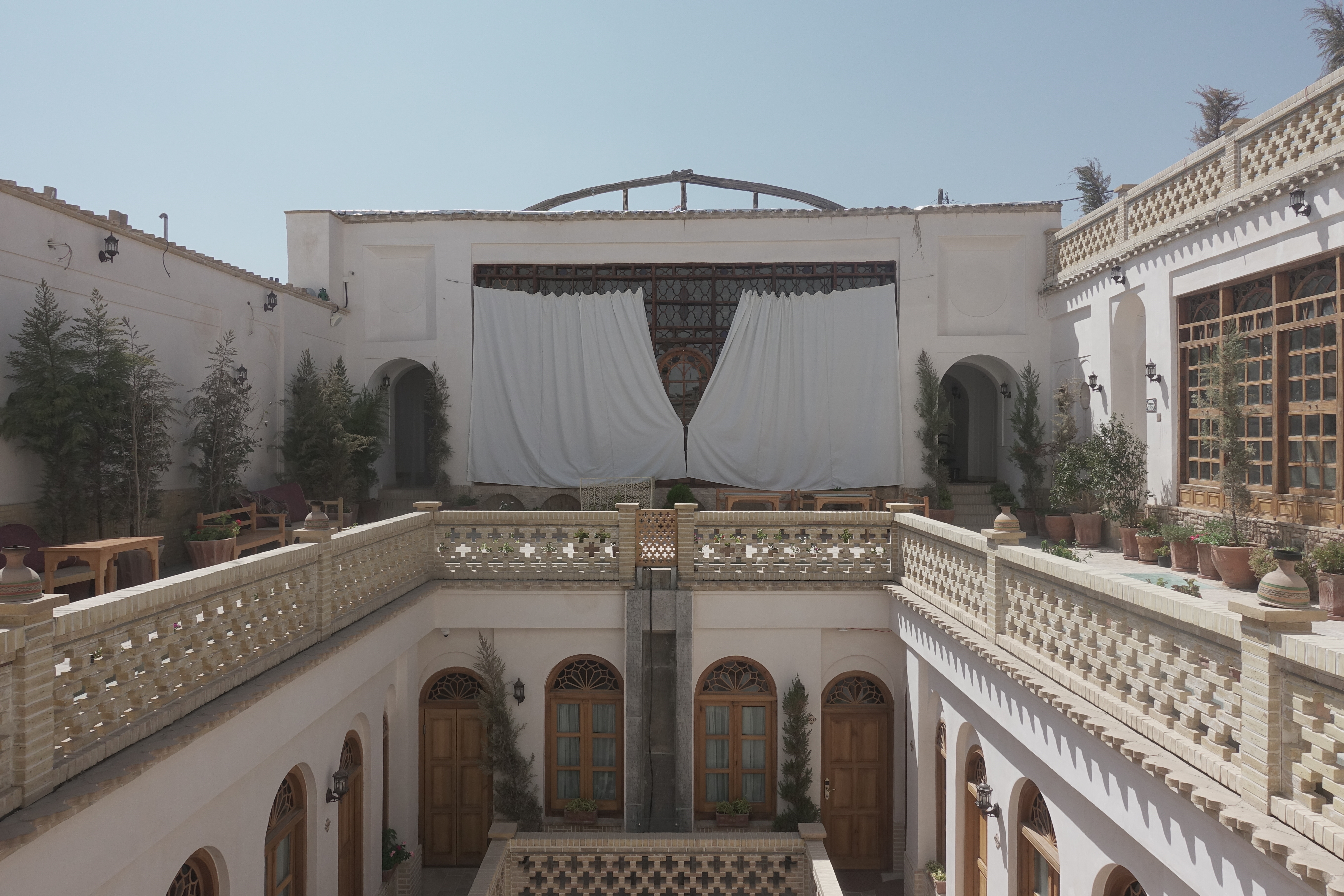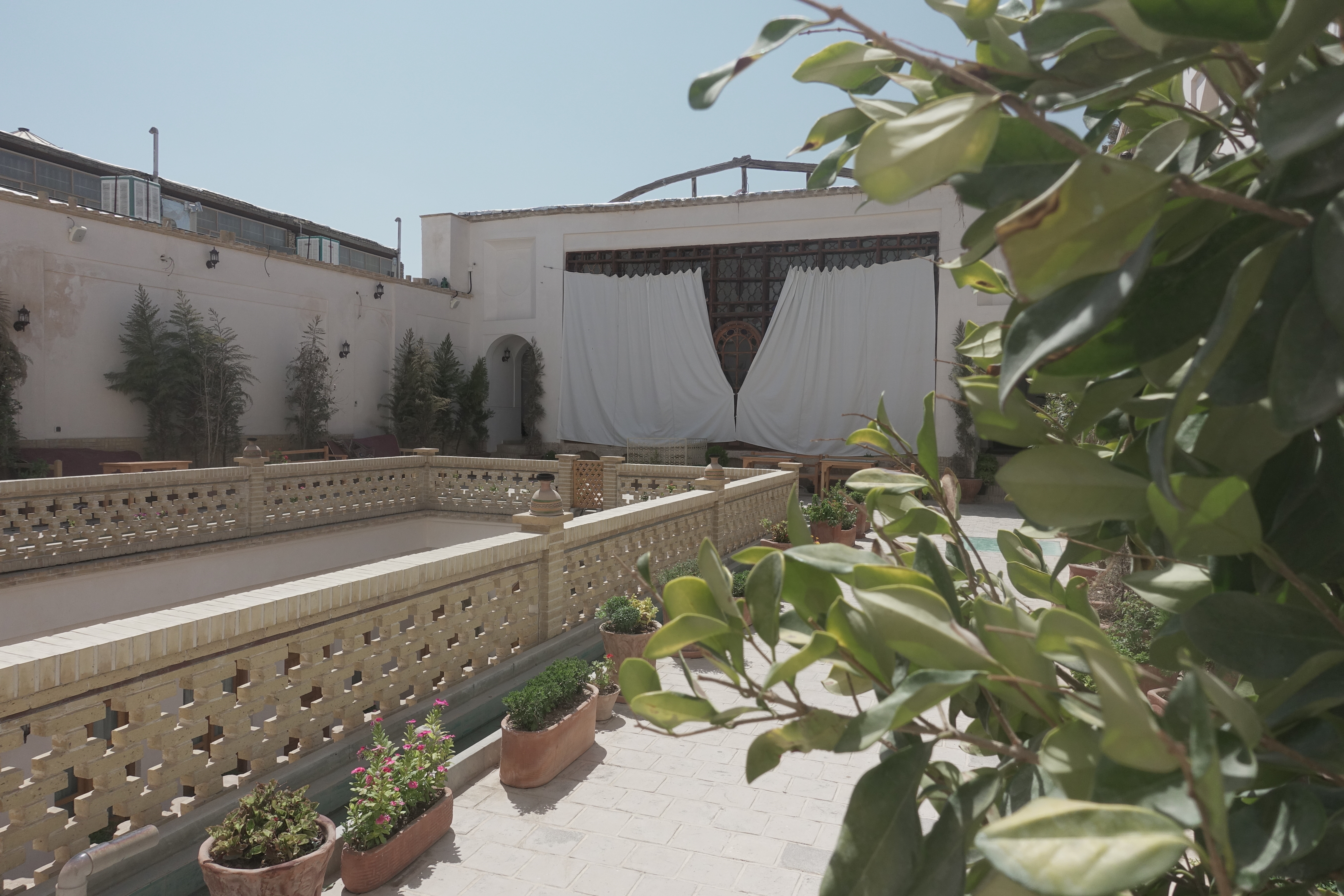 The common area has a very original Iranian look and you definitely feel the Persian spirit there. Besides the well working AC, the facility is built into the ground. The result is a natural cooling due to the lower temperature of the ground, which is not only an ideal way to use space but also a sustainable approach. moreover, you can have a cup of tea (give the saffron tea a go) in the shadow provided by the walls, where blue sky accompanies this charming scenery.