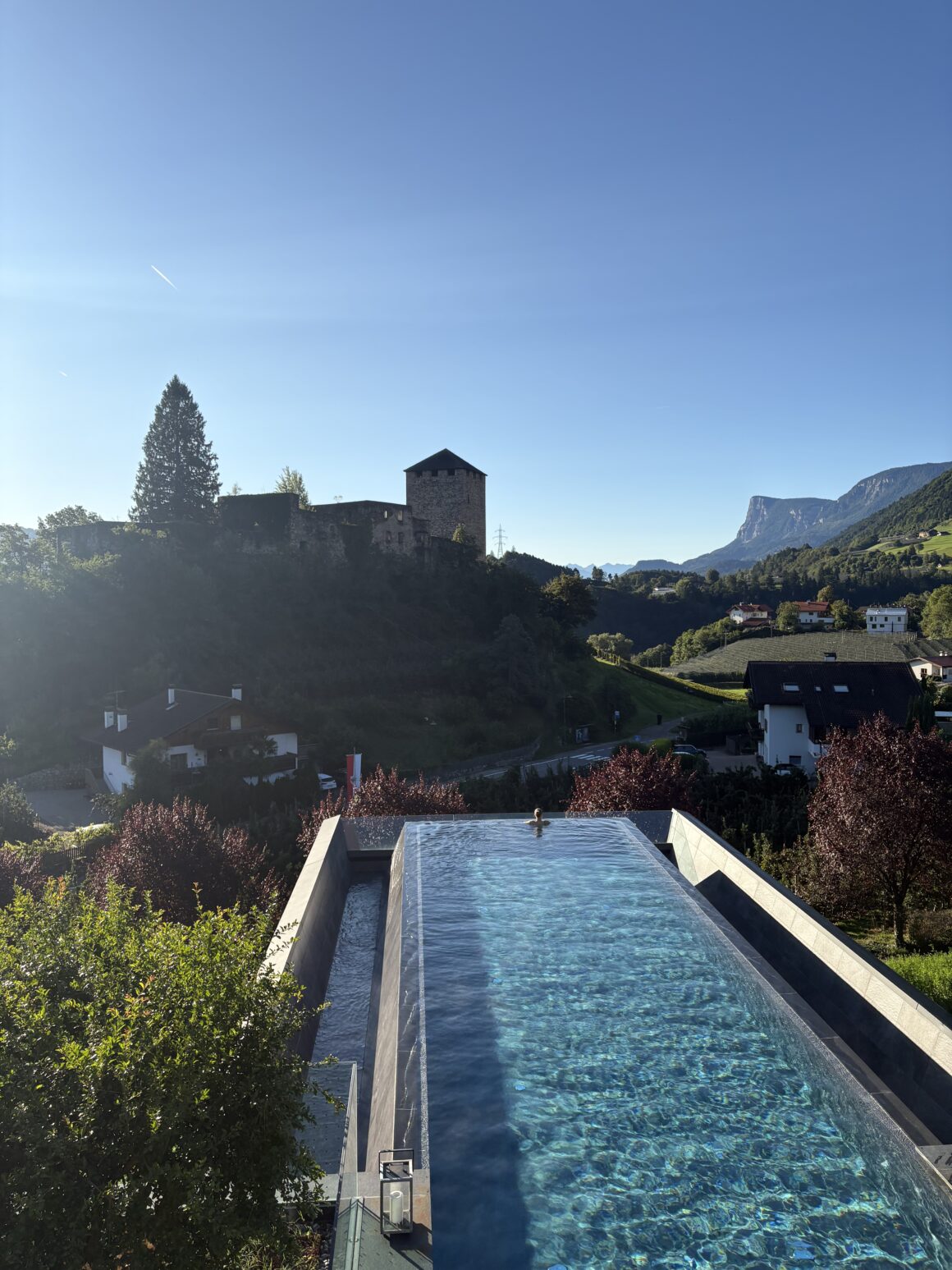 Nestled in the forest near Merano, Hotel der Waldhof (a 4-star superior hotel) blends modern design with South Tyrolean charm. You’ll already be looking forward to that first swim in the morning in the magic infinity pool with a view you’d like to say good morning to every single day. But first, let’s have dinner.